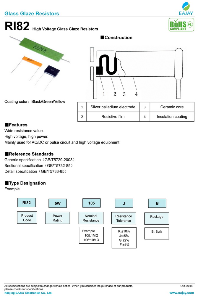 Product introduction:Wide resistance value. High voltage, high power. Mainly used for AC/DC or pulse circuit and high voltage equipment.