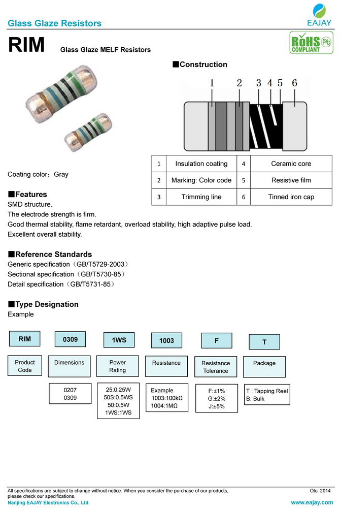 RIM glass glaze MELF resistors