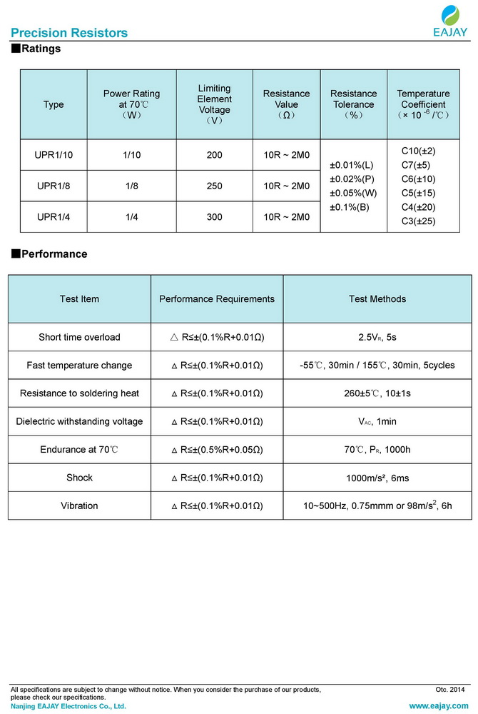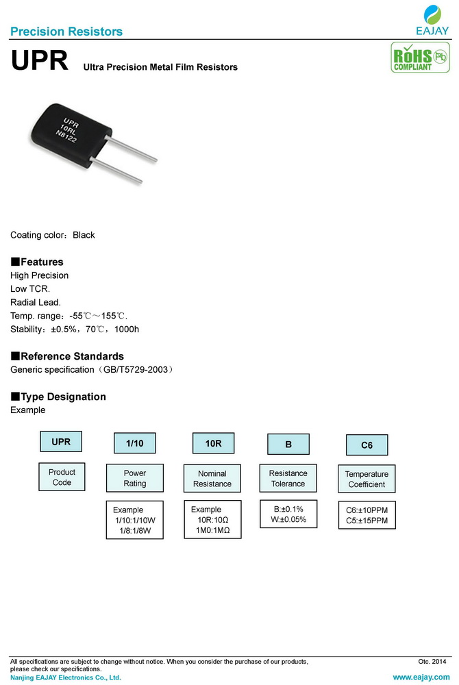 Product introduction:High Precision. Low TCR. Radial Lead. Temp. range:-55℃~155℃. Stability:±0.5%,70℃,1000h.