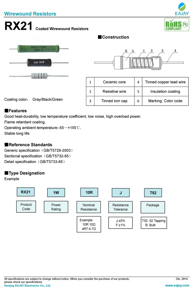 Product introduction:Good heat-durability, low temperature coefficient, low noise, high overload power. Flame retardant coating. Operating ambient temperature:-55~+155℃. Stable long life.