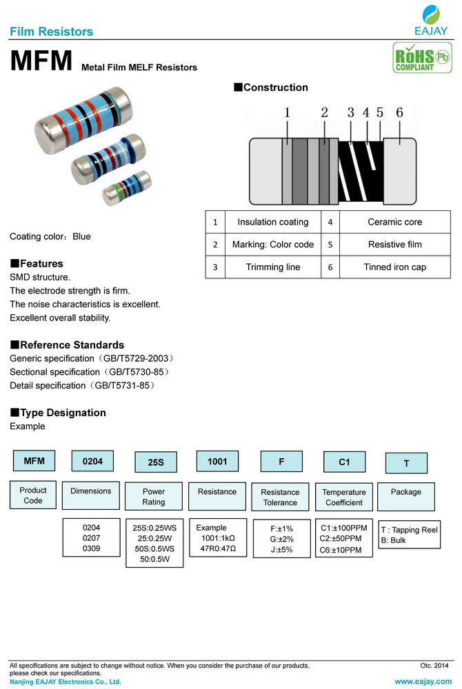 MFM metal film MELF resistors