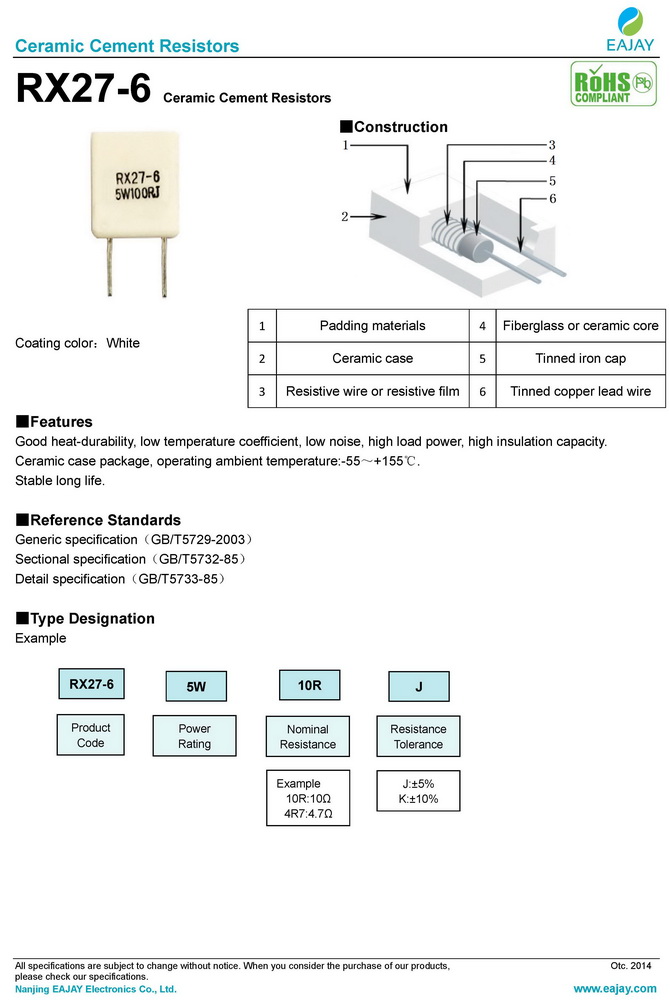 - RX27-6 ceramic cement resistors