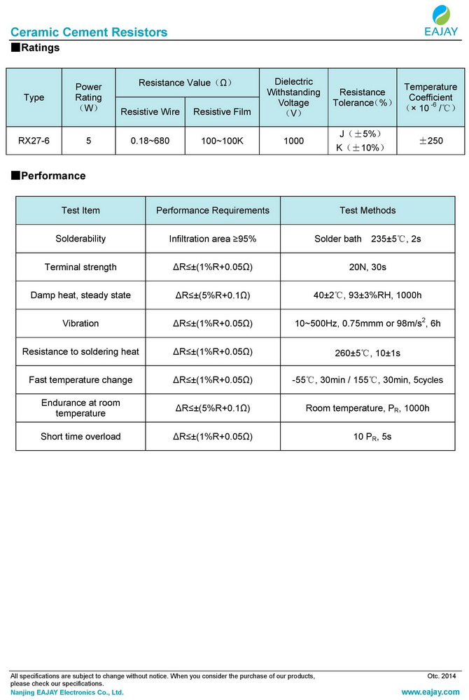 - RX27-5 ceramic cement resistors