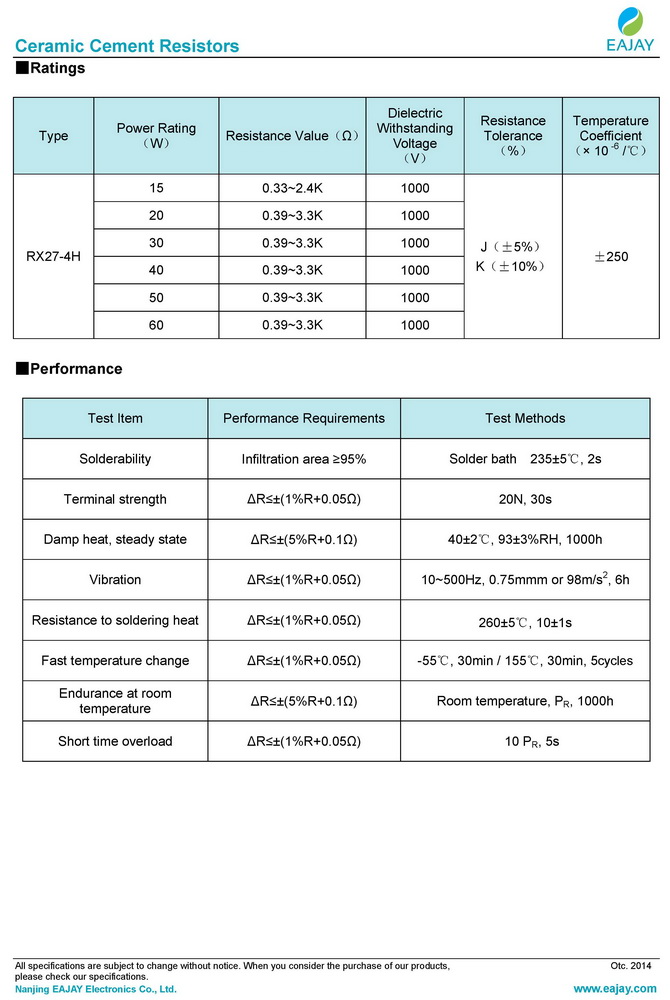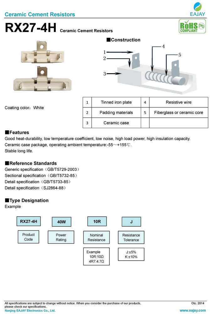 - RX27-4H ceramic cement resistors