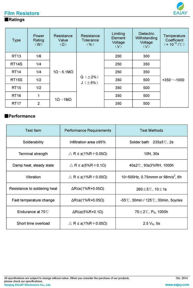 Product introduction:Stable performance, Wide range of resistance, small size, high operating temperature and high ultimate voltage. High adaptive pulse load, good high frequency performance. Operating ambient temperature:-55~+125℃.