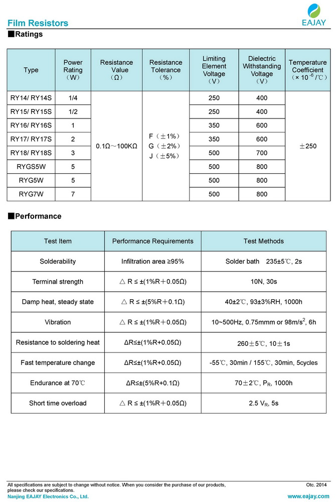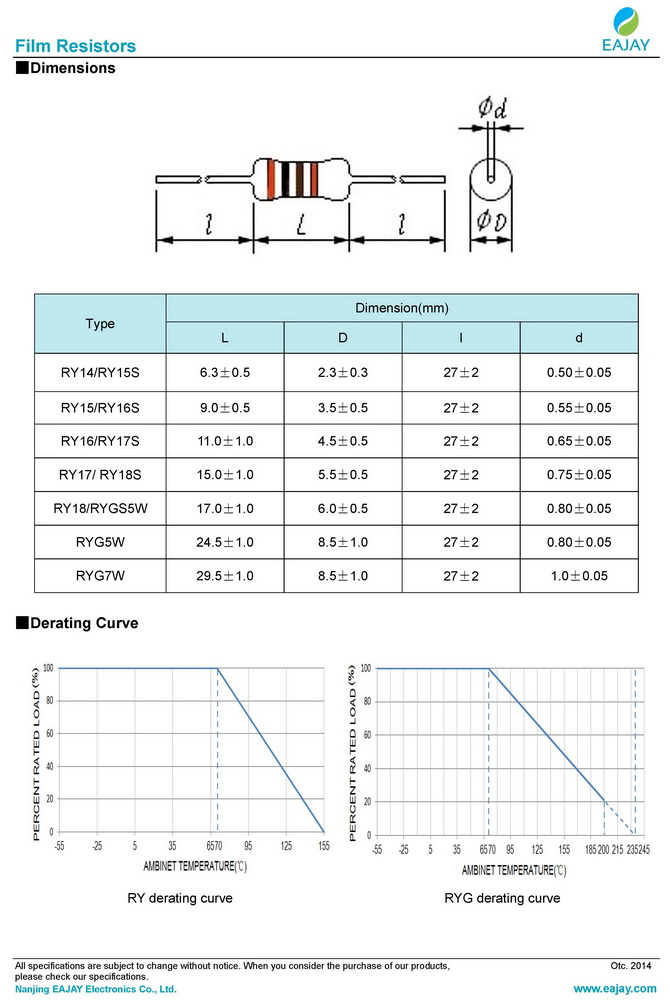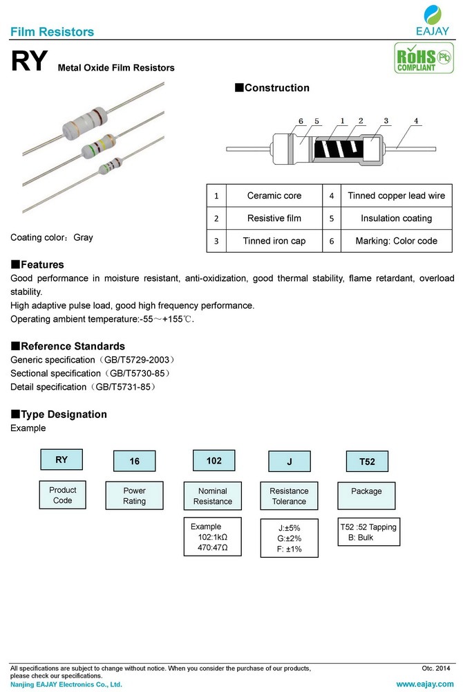 RY metal oxide film resistors