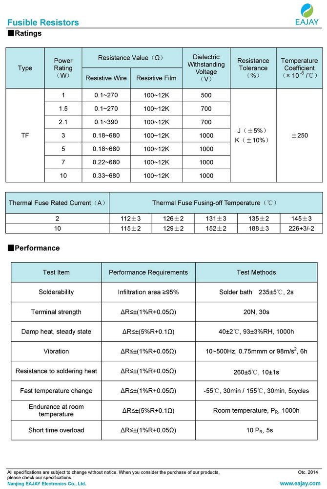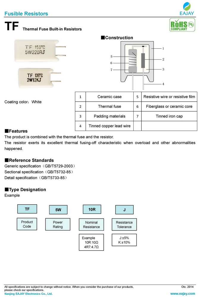 Product introduction:The product is combined with the thermal fuse and the resistor. The resistor exerts its excellent thermal fusing-off characteristic when overload and other abnormalities happened.