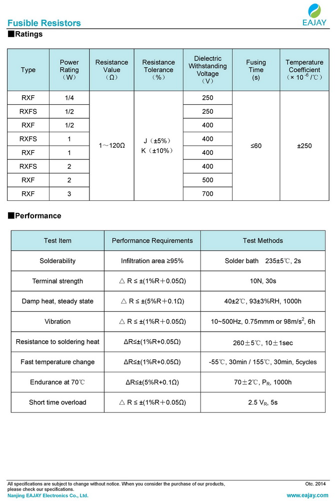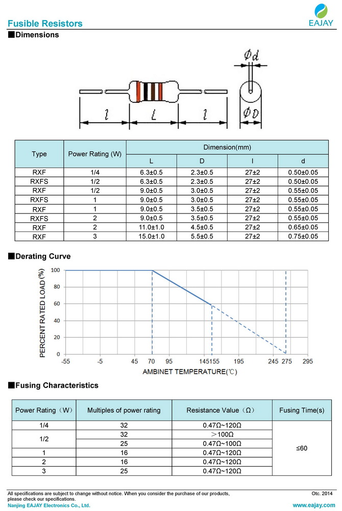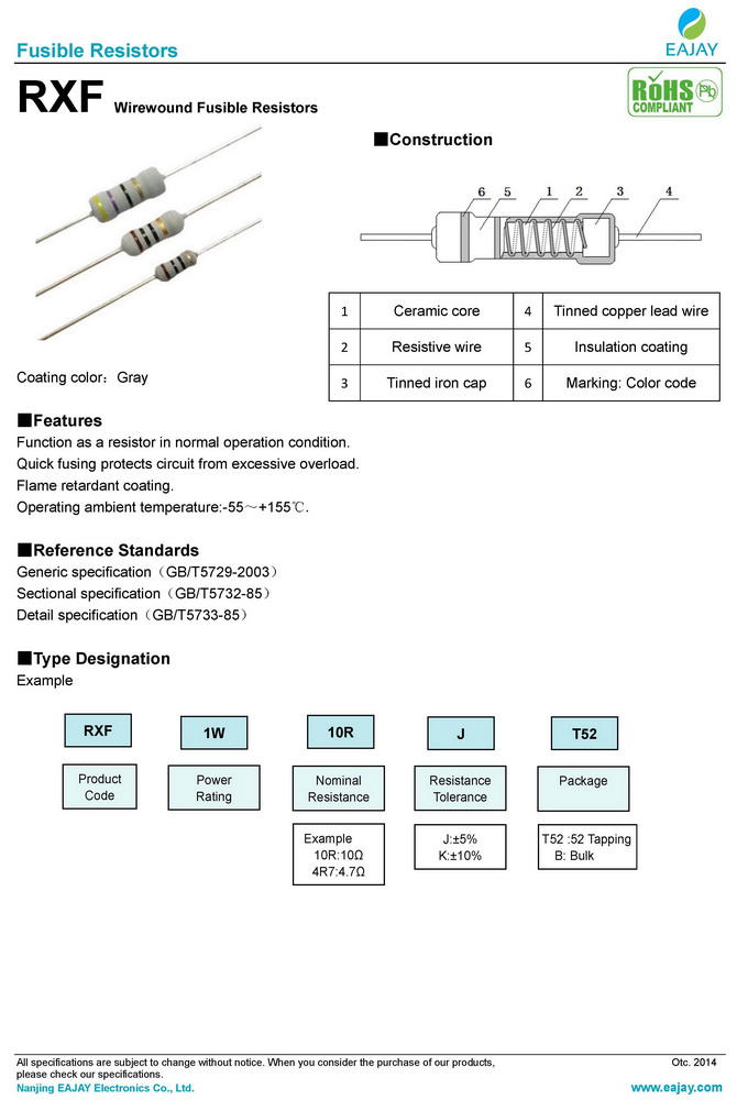 Product introduction:Function as a resistor in normal operation condition. Quick fusing protects circuit from excessive overload. Flame retardant coating. Operating ambient temperature:-55~+155℃.
