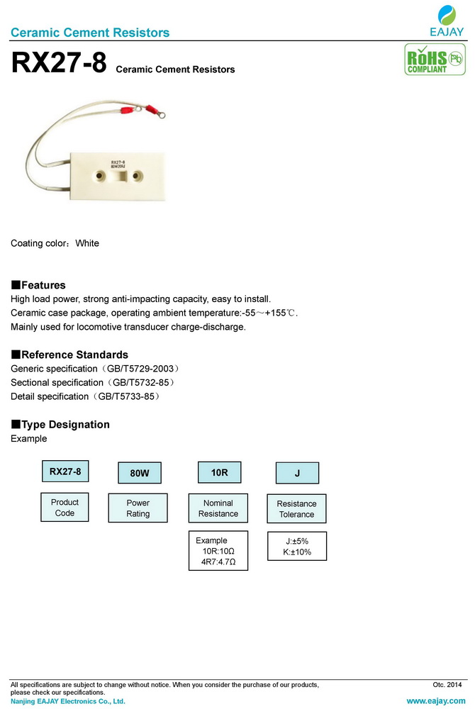 Product introduction:High load power, strong anti-impacting capacity, easy to install. Ceramic case package, operating ambient temperature:-55~+155℃. Mainly used for locomotive transducer charge-discharge.
