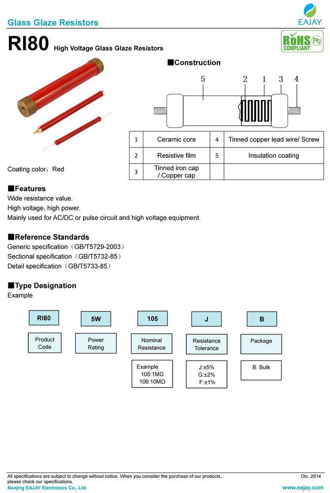 Product introduction:Wide resistance value. High voltage, high power. Mainly used for AC/DC or pulse circuit and high voltage equipment.