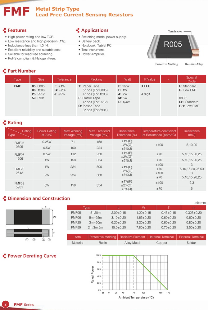FMF Metal strip type current sensing resistors