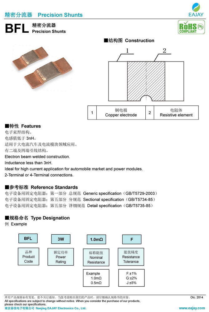 電子束焊結構。 電感值低于3nH。 適用于大電流汽車及電流模塊領域應用。 有二端及四端引線結構。