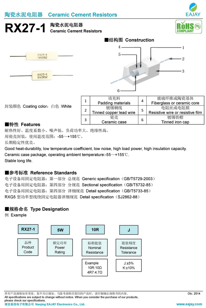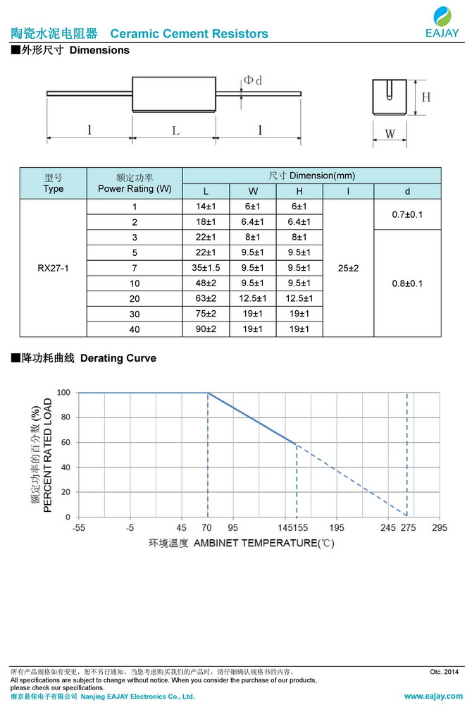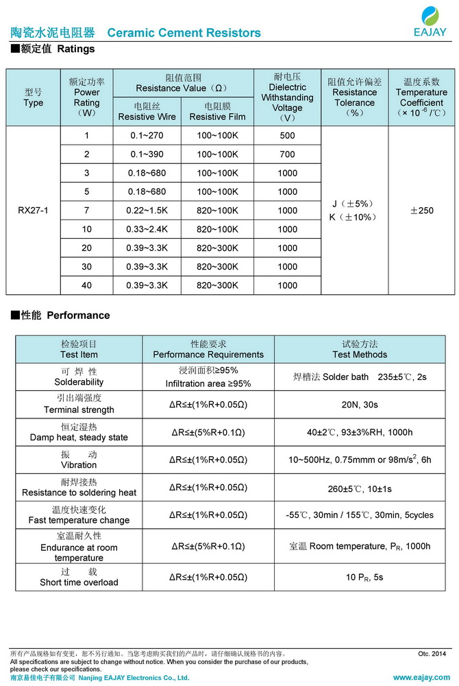 耐熱性好、溫度系數小、噪聲低、負荷功率大、絕緣性高。 用瓷殼封裝,使用溫度范圍:-55~+155℃。 長期穩定性優良。