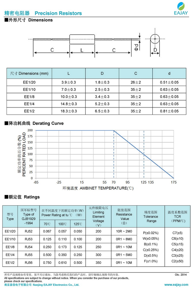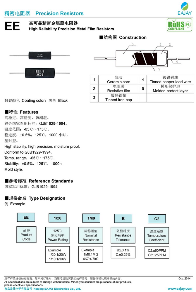 產品簡介:高穩定、高精度、防潮濕。 符合國家軍用標準GJB1929-1994。 溫度范圍:-65℃~+175℃。 穩定度:±0.5%,125℃,1000小時。 塑封型。