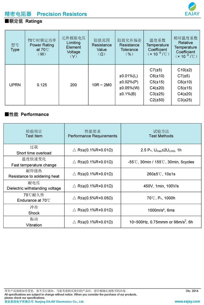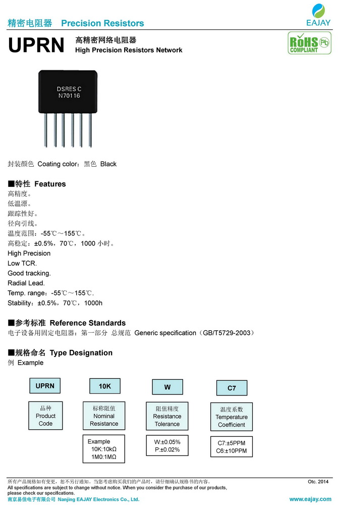 產品簡介:高精度。 低溫漂。 跟蹤性好。 徑向引線。 溫度范圍:-55℃~155℃。 高穩定:±0.5%,70℃,1000小時。