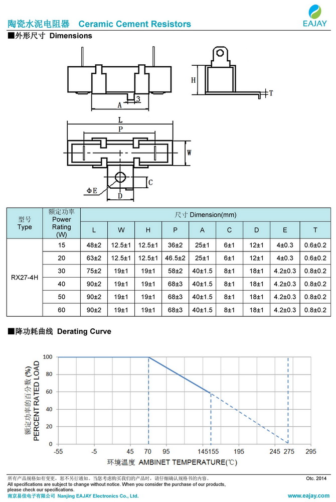 產品簡介:耐熱性好、溫度系數小、噪聲低、負荷功率大、絕緣性高。 用瓷殼封裝,使用溫度范圍:-55~+155℃。 長期穩定性優良。