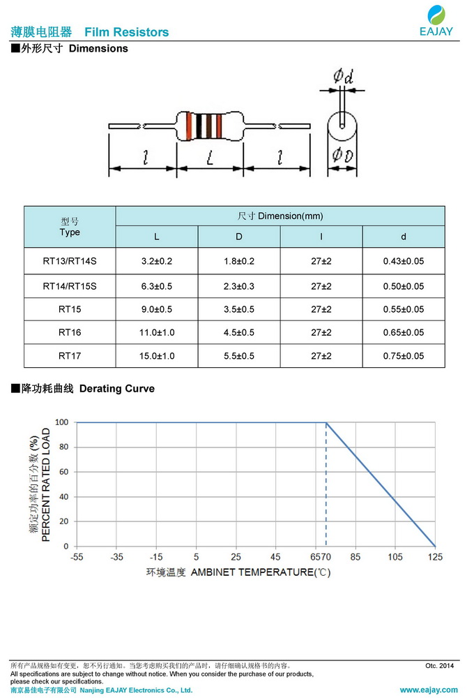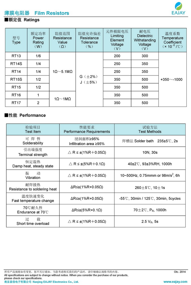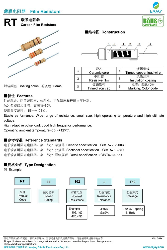 產品簡介:性能穩定、阻值范圍寬、體積小、工作溫度和極限電壓較高。 脈沖負荷適應性強、高頻特性好。 使用溫度范圍:-55~+125℃。