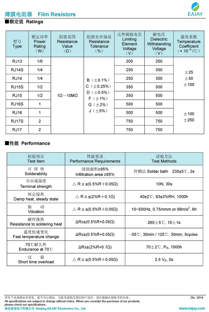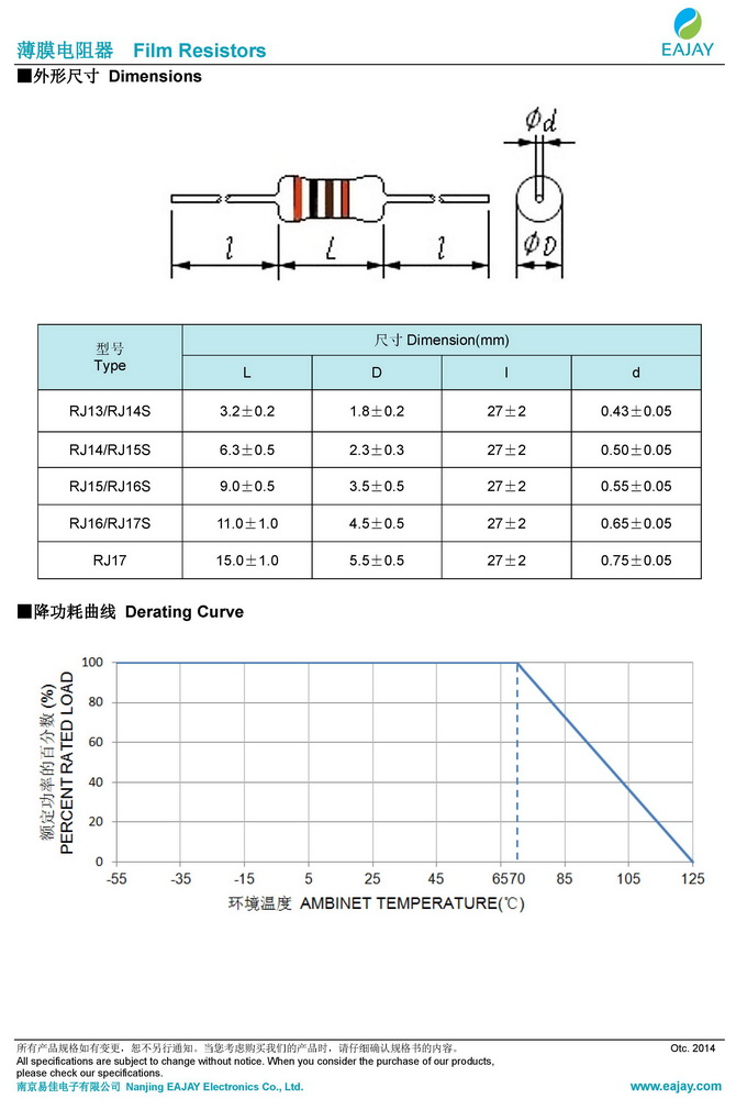 RJ金屬膜電阻器