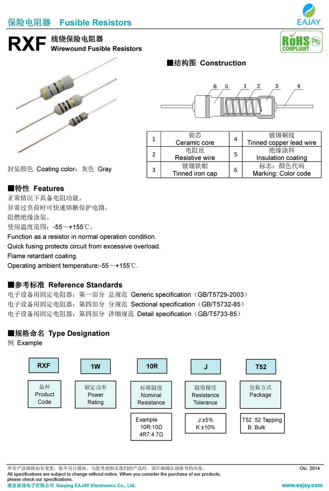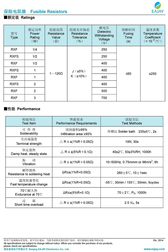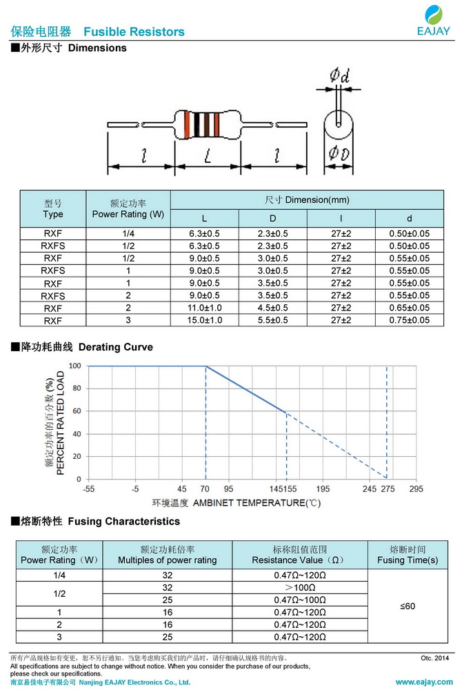 產品簡介:正常情況下具備電阻功能。 異常過負荷時可快速熔斷保護電路。 阻燃絕緣涂裝。 使用溫度范圍:-55~+155℃。