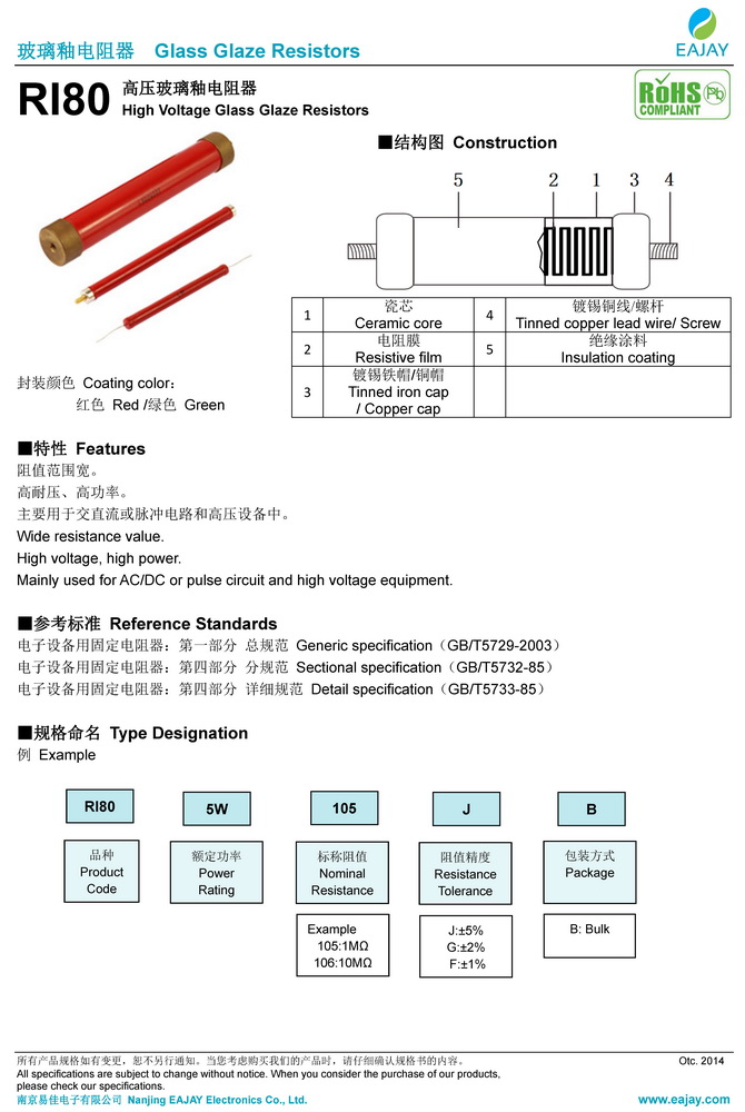 阻值范圍寬。 高耐壓、高功率。 主要用于交直流或脈沖電路和高壓設備中。
